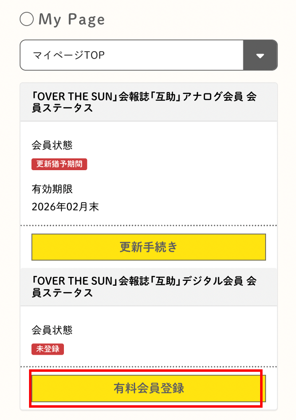 ①プラン変更可能期間中に、マイページにアクセスしてください。